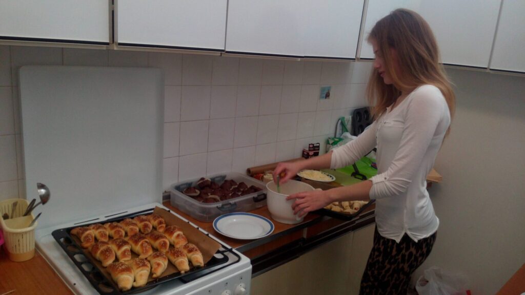 Marljivo smo pekli kolačiće i peciva, u školskoj kuhinji, a zatim ih prodavali tijekom velikog odmora.