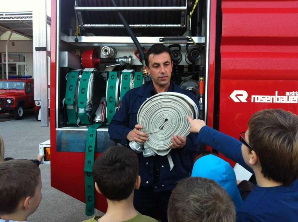 U srijedu 14. 11. 2012. posjetili smo vatrogasnu postaju. Krenuli smo pješke od škole do postaje. Na dolasku u postaju dočekao nas je vatrogasac. Po ulasku smo vidjeli veliki ormar s trofejima. Zatim smo razgovarali s vatrogascima o tome kako se gasi vatra. Nakon toga smo otišli u dvorište s vatrogasnim vozilima. Vatrogasac nam je pokzao vozilo i ljestve s košarom gdje smo se svi popeli. Imali smo malu vježbu s vodom i bocama. Poslije toga smo otišli u dvoranu gdje vatrogasci vježbaju. Na kraju smo se pozdravili i uputili u školu. Izlet je bio kratak, ali jako lijep.